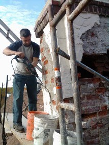 The fact of the matter is that once a problem becomes visible to you from the ground, then the structure is usually beyond saving. This is because chimneys many times will rot from the inside out. So repointing would be like putting a bandaid on a broken leg. We do not perform work we don't believe in. However we do perform repointing when it will be enough and the chimney is structurally sound. Whatever is cost effective for you the customer.
